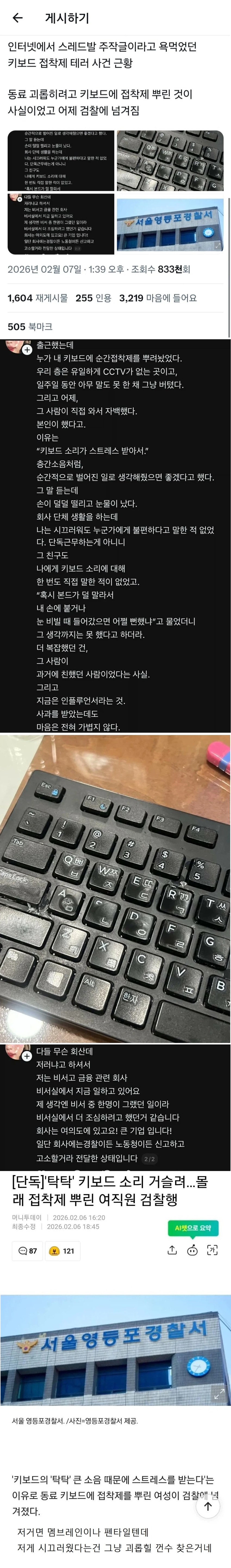 | * | 키보드 접착제 사건 [4] | 향이있는밤 | 2026/02/13 |