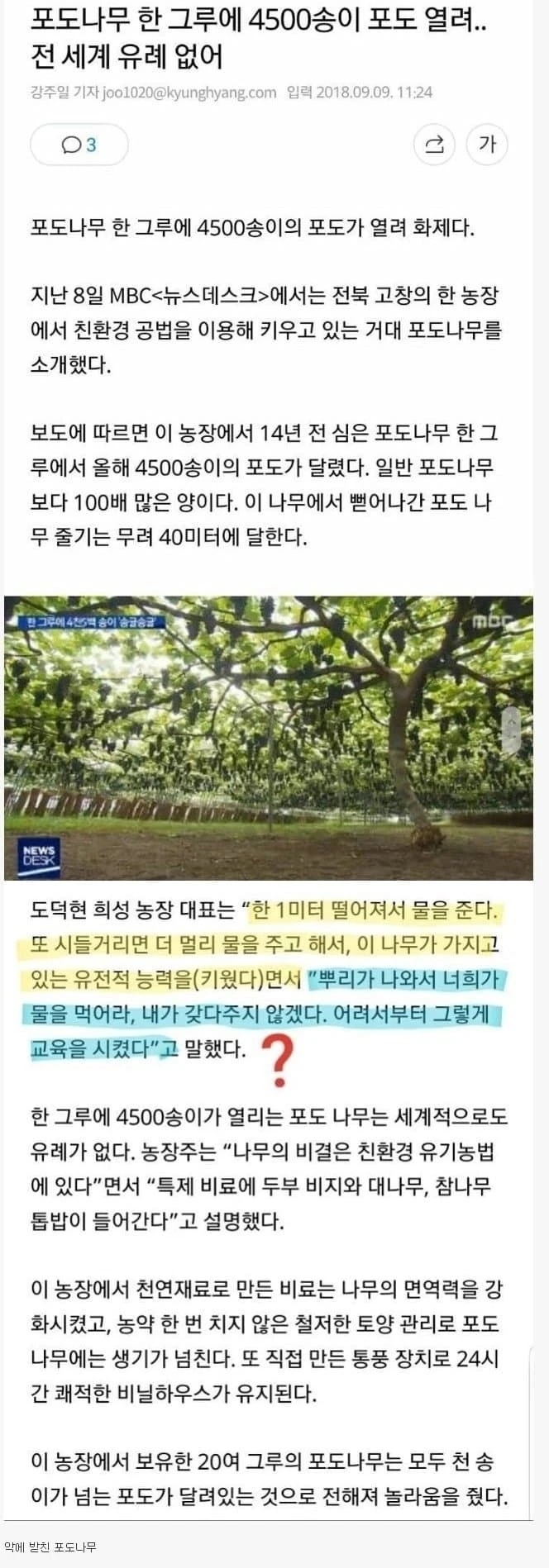 저게 답이라고? 기둥? 이 하나인데 4500송이분의 양질의포도로 크기위한 양분이동하는데는 문제없나?