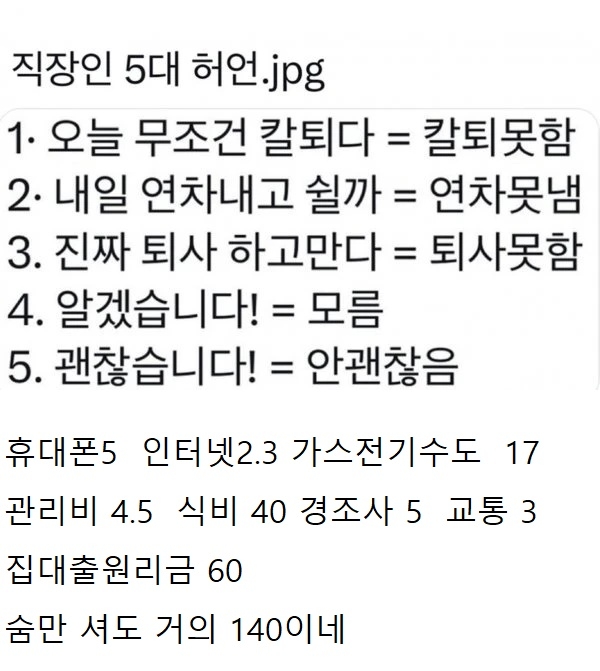 공과금 다 합쳐서 70 정도 나오고 생활비 포함하면 그래도 150은 있어야지