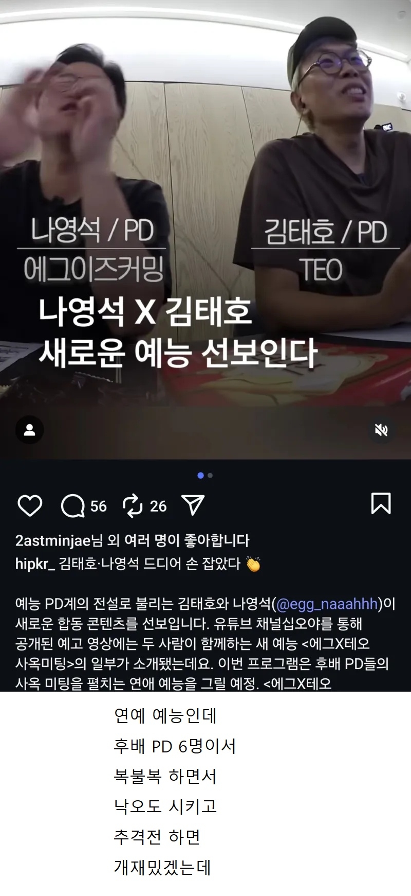 이리된거 젊고 생소한 사람말고 강호동 유재석으로..