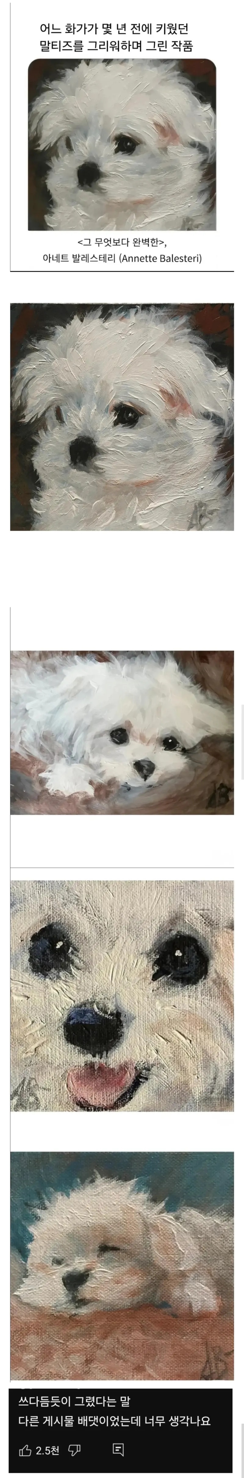 * | [뮤직·아트·도서] | 어느 화가가 몇 년 전에 키웠던 말티즈를 그리워하며 그린 작품 [4] | 향이있는밤 | 2025/10/06 |