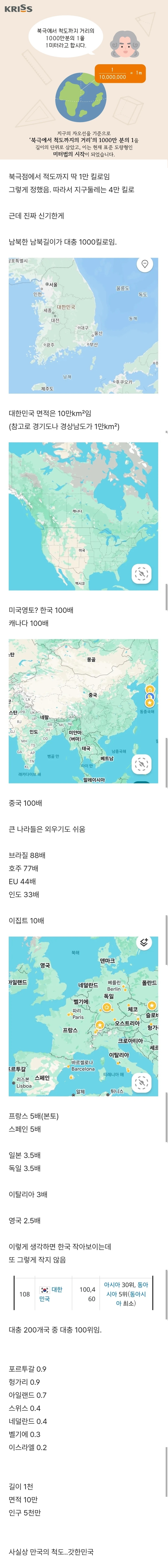 "우리나라 면적은 딱 100만 제곱킬로미터야! 1000만 제곱킬로미터야!" 할 수 있는 거 아님?