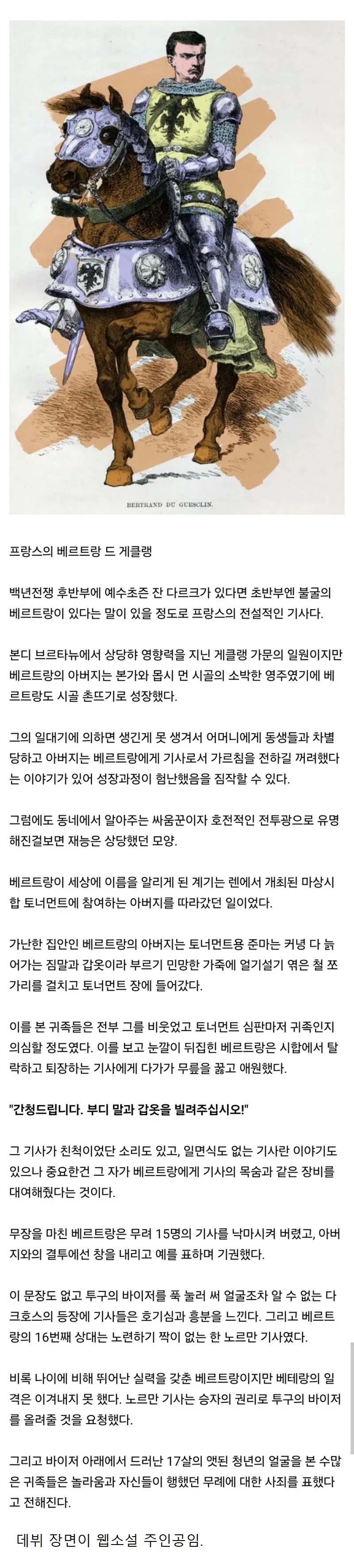 간주하지만, 게클랭이 종자로서 여러 마상창시합에 참가했을 가능성은 있다고 본다.