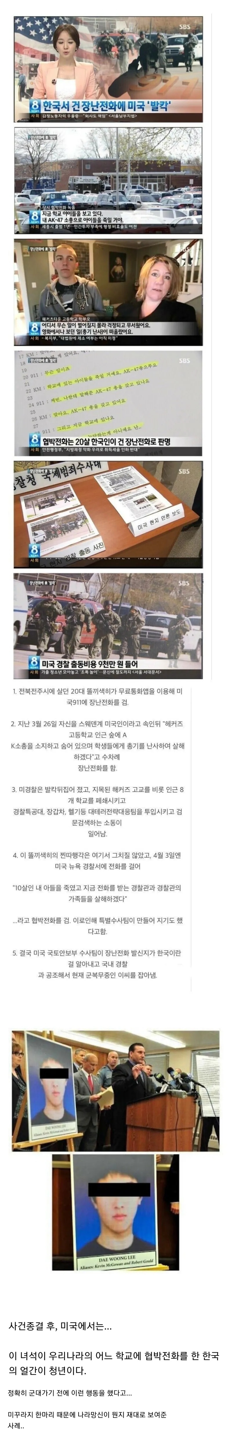 911 센터에 협박전화를 한 한국인.