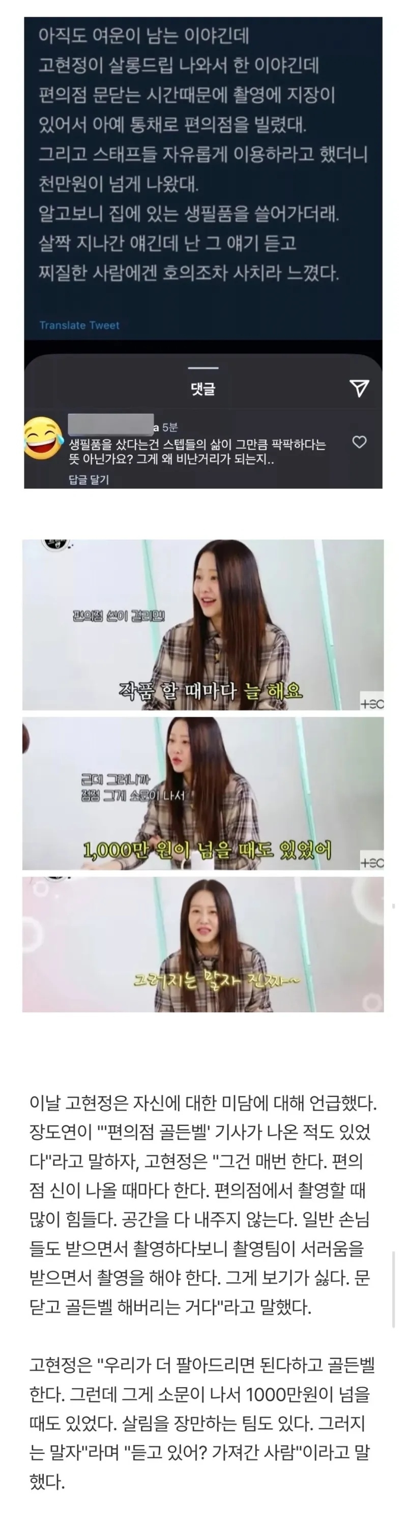 고현정이 찍는 드라마에 편의점 씬이 나오면 전체 다 빌린다는데