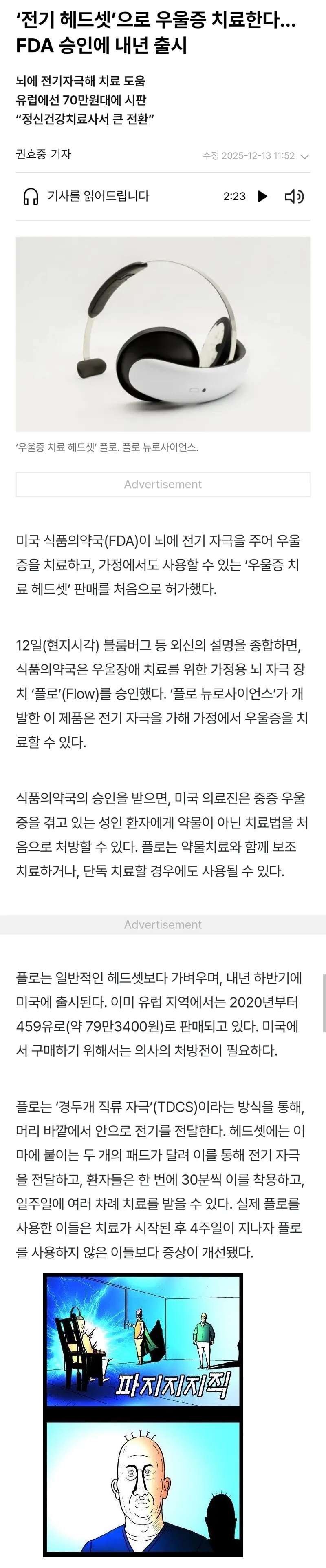 | * | [라이터] | “전기 충격 헤드셋”으로 우울증 치료… 내년 출시. | 낭인캠퍼 | 2025/12/16 |