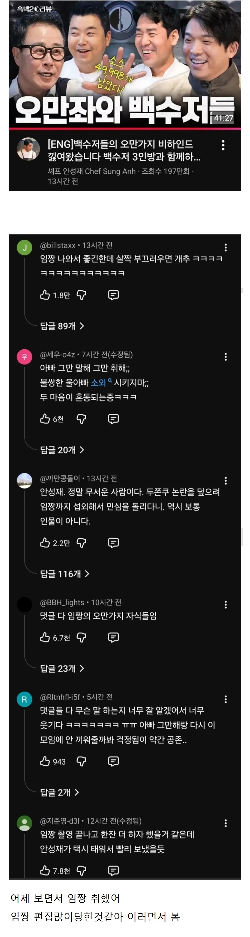 | * | [뮤직·아트·도서] | 임짱, 안성재 유튜브 출연 반응 [3] | 하얀물결 | 2026/01/05 |