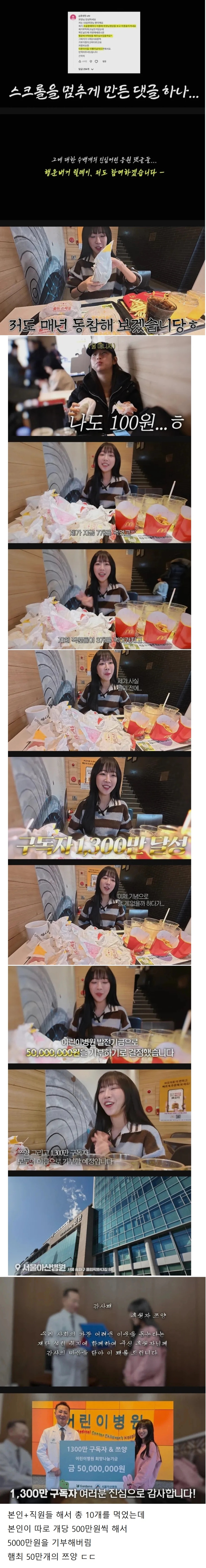 5000만원 기부한거면 행운버거를 50만개를 먹은거구나ㅋㅋㅋ