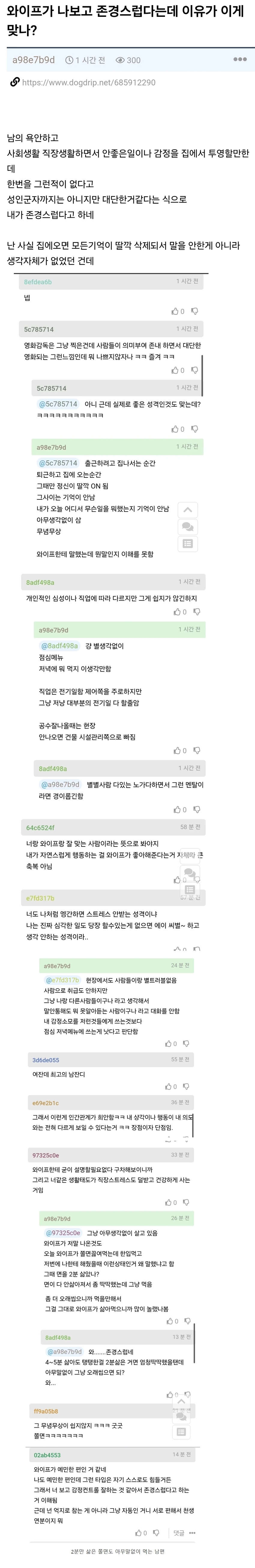 | * | [라이터] | 실제 여자가 생각하는 존경할만한 남편. [3] | 낭인캠퍼 | 2026/02/17 |