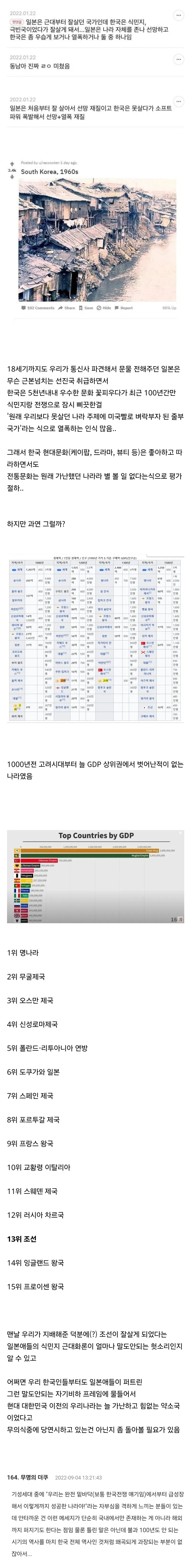 일본보다 5천년동안 부자였는데 고작 100년 글고 일본 따라잡은지가 언젠디..