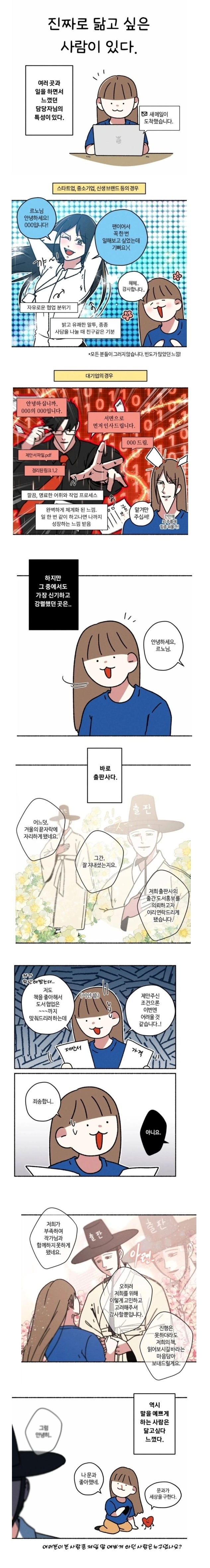 오 나도 어쩌다보니 한때 잠시 출판사 담당자하고 일한 적 있었는데 정말 저런 느낌이었어 맞음