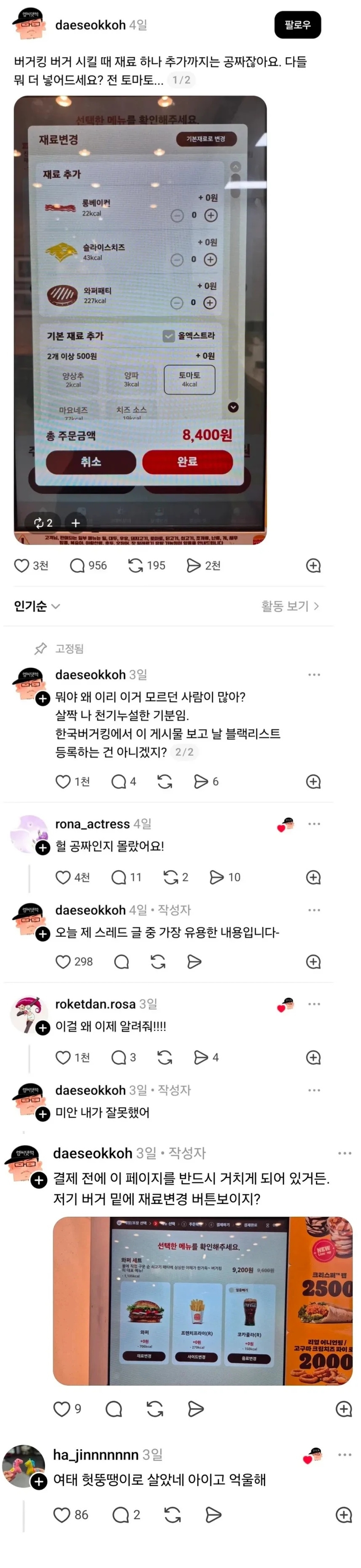 재료추가하면 버거도 새로만들어주는 장점이 있따!