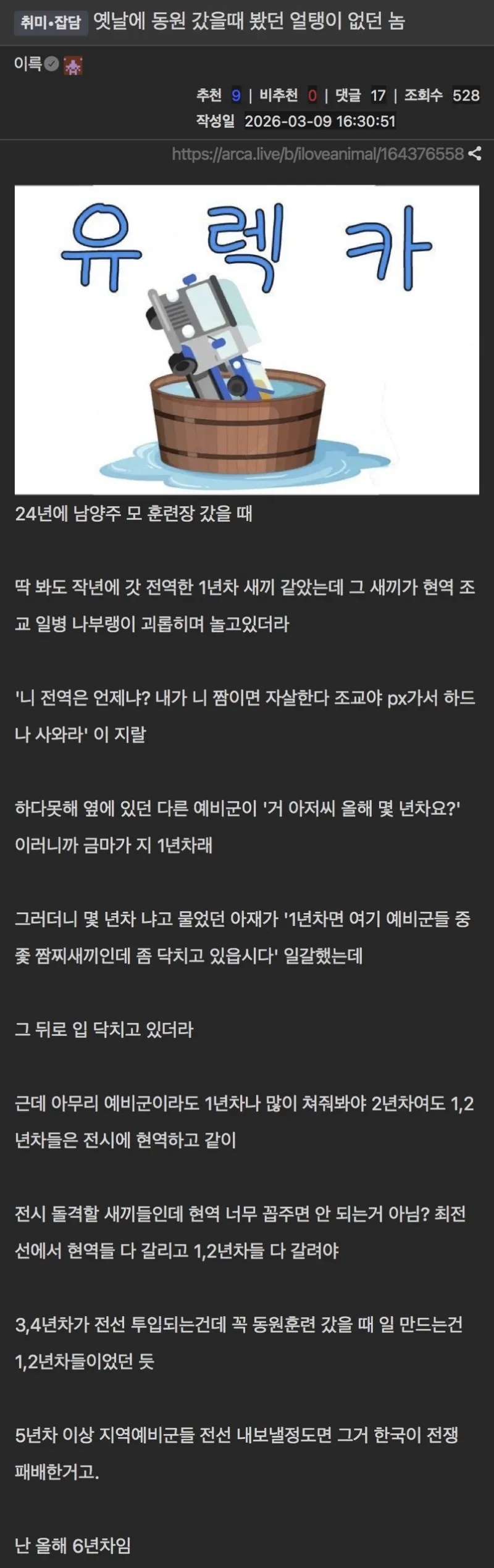 | * | [라이터] | 조교한테 짬질하던 예비군 본 썰. [4] | 금선기 | 2026/03/12 |
