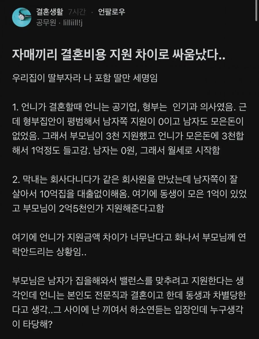 구라 같은데 세상 어떤 부모가 저렇게 차등 지원을..