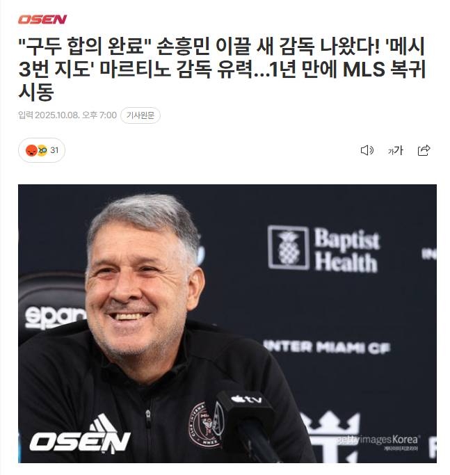 마르티노 감독은 FC 바르셀로나, 아르헨티나 대표팀 등에서 리오넬 메시를 비롯해 수많은 스타 플레이어와 함께했던 지도자인데 애틀랜타 유나이티드, 인터 마이애미에서 우승하기도 했답니다.