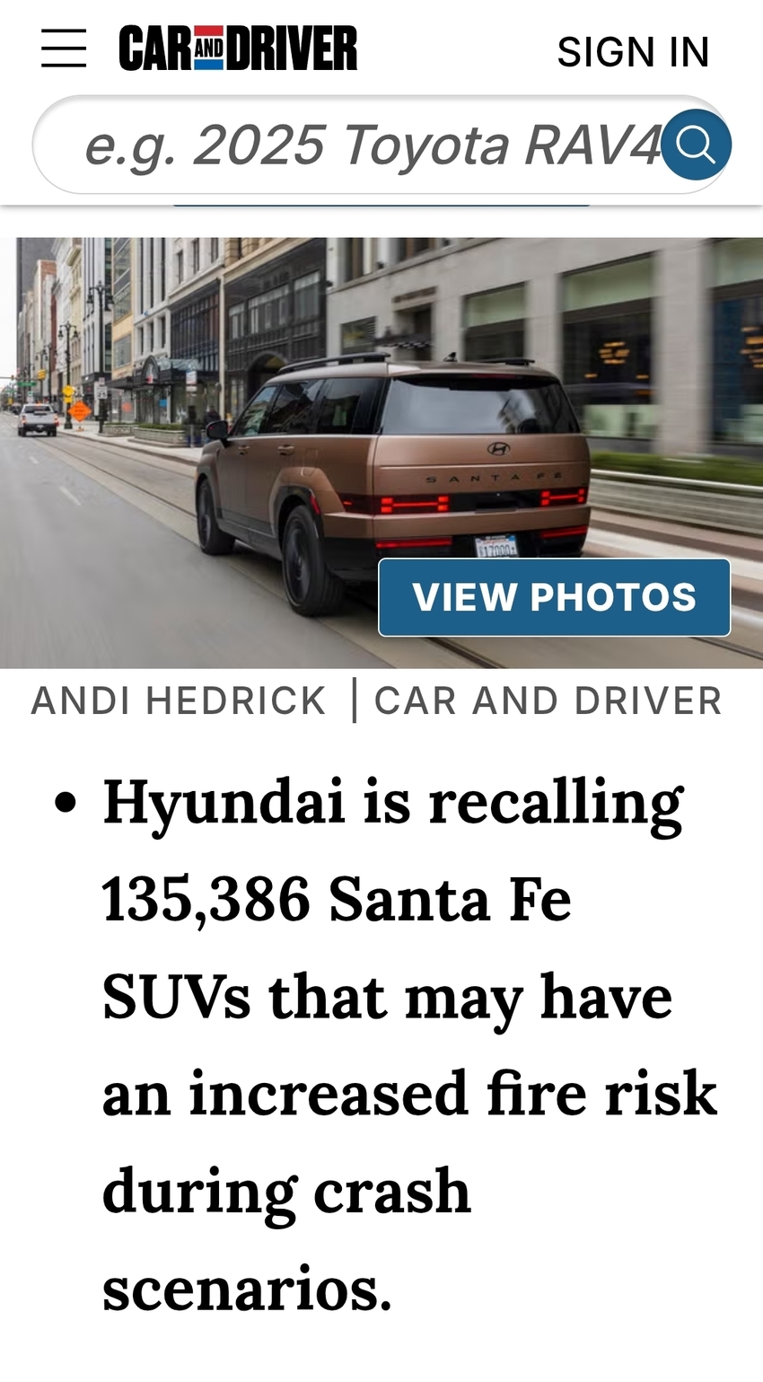 * | [머니] | 현대 산타페 13.5만대 리콜 | 살라딘 | 2025/10/09 |