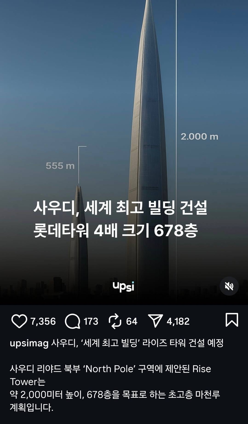 678층?????????????????????????? 현존 세계 최고층빌딩 부르즈 할리파가 지상 163층 아닌가?????? 갑자기 몇 배 더 높은 걸??????????????????