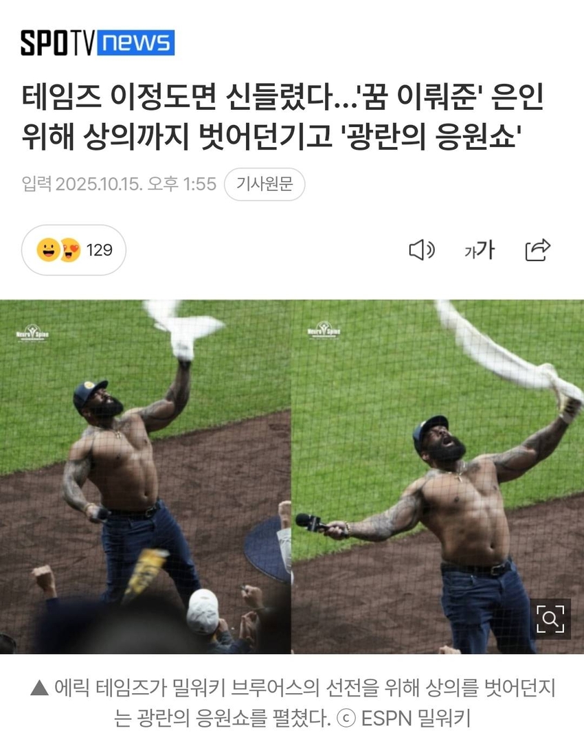 * | [스포츠] | 에릭 테임즈 근황 [2] | 지굿지굿 | 2025/10/16 |