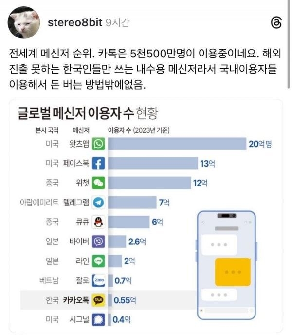 * | [머니] | 글로벌 메신저 이용자 수 현황 [1] | 러블라이즈 | 2025/10/18 |