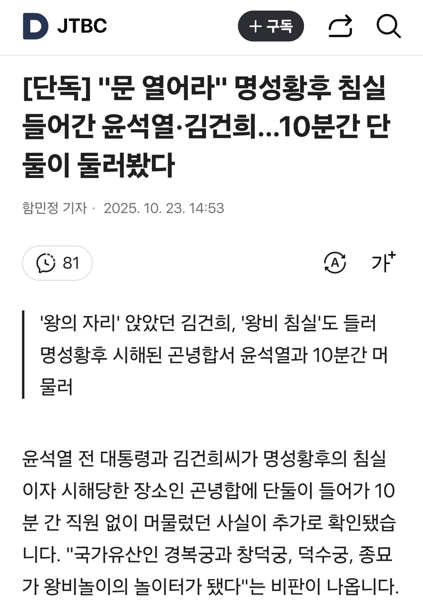 * | [소셜] | 명성황후 침실 들어간 윤건희 10분간 둘만 [1] | 민gosu | 2025/10/23 |