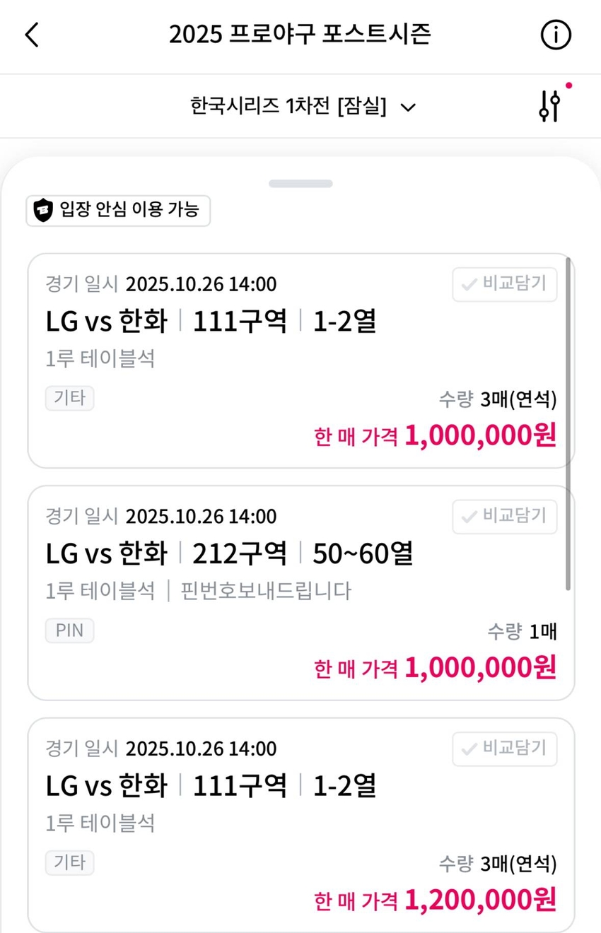 | * | [스포츠] | 한국시리즈 1차전 1루 테이블 암표 가격 [1] | 일용소독자 | 2025/10/25 |