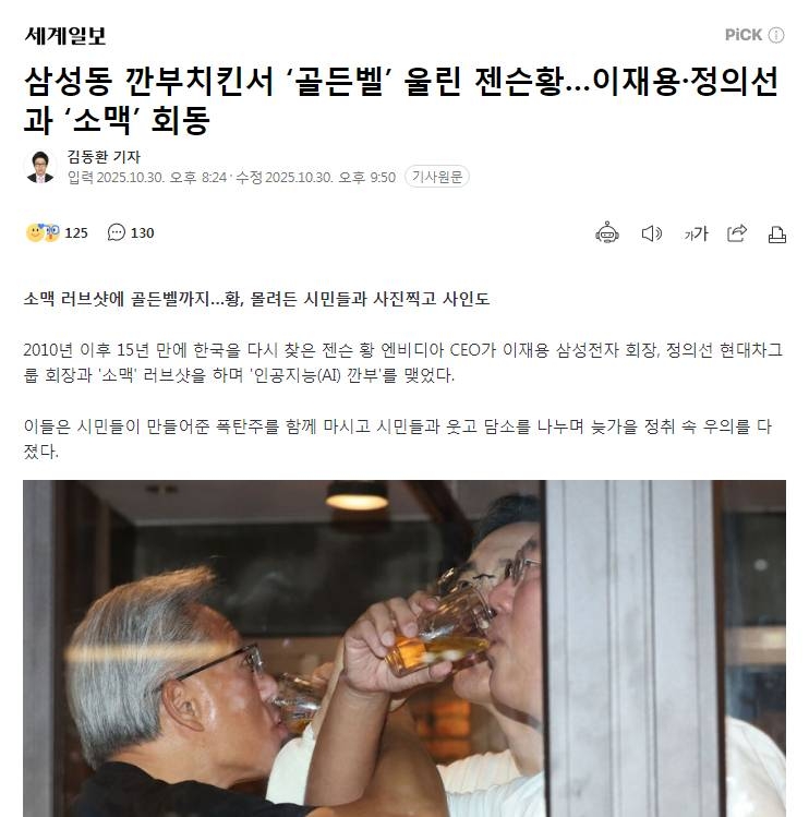 결국 젠슨황은 "오늘 모두 공짜"라며 식당의 '골든벨'을 울렸다.