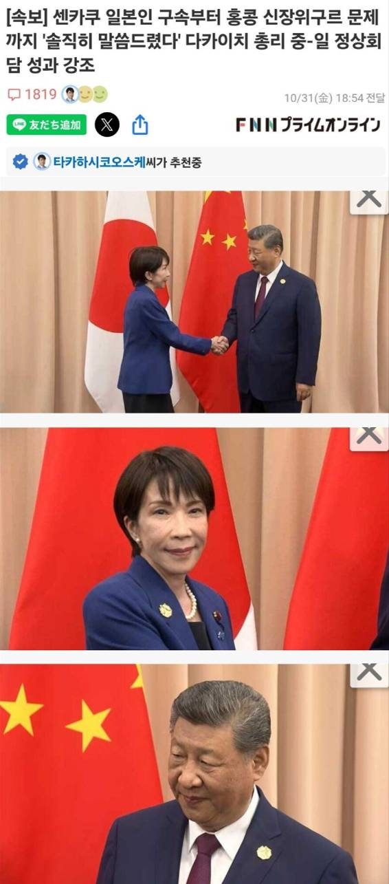 | * | [소셜] | 중일 정상회담 분위기 세 컷 요약 [1] | owlwo | 2025/11/01 |
