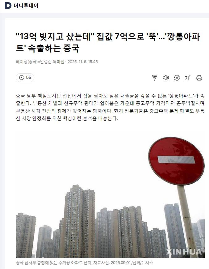 | * | [머니] | 빚내서 13억에 샀는데 7억으로 집값 떨어졌다는 중국 [1] | habbySE | 2025/11/06 |