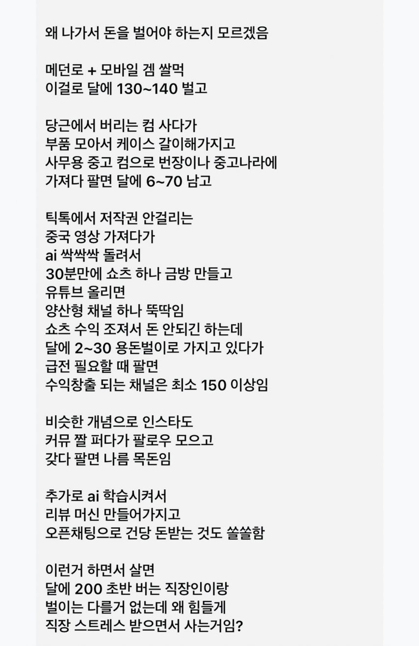 나가서 돈을 벌지 말고 재택으로 벌자는 얘기였음.