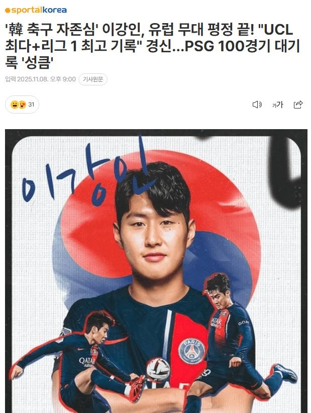 | * | [스포츠] | 이강인 90분당 평균 6.9회의 공격 관여로 리그앙 탑티어 | 옥심아드로핀 | 2025/11/08 |