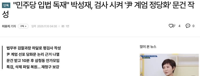 | * | [소셜] | "민주당 입법 독재" 박성재, 검사 시켜 '尹 계엄 정당화' 문건 작성 [1] | EHFehf똘35 | 2025/11/10 |