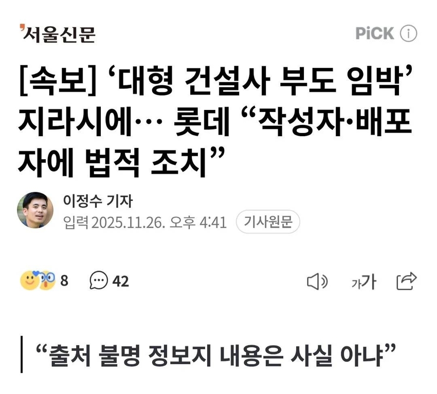 | * | [머니] | 롯데 "건설사 부도 유포자, 고소한다" | 오키도다키 | 2025/11/26 |