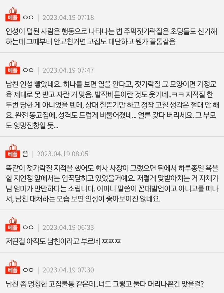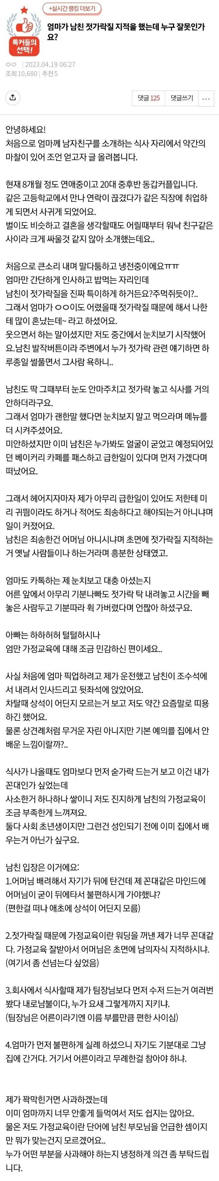 | * | [프리] | 엄마가 남친 젓가락질 지적을 했는데 누구 잘못인가요? [1] | 살라딘 | 2025/11/30 |