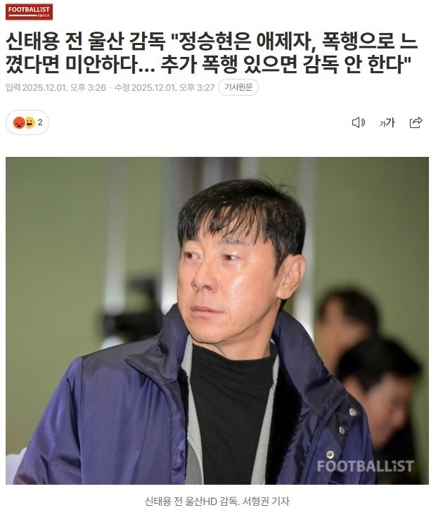 | 16254 | [스포츠] | 정승현 “신태용 감독 폭행 모두 사실" [2] | 오키도다키 | 2025/11/30 |