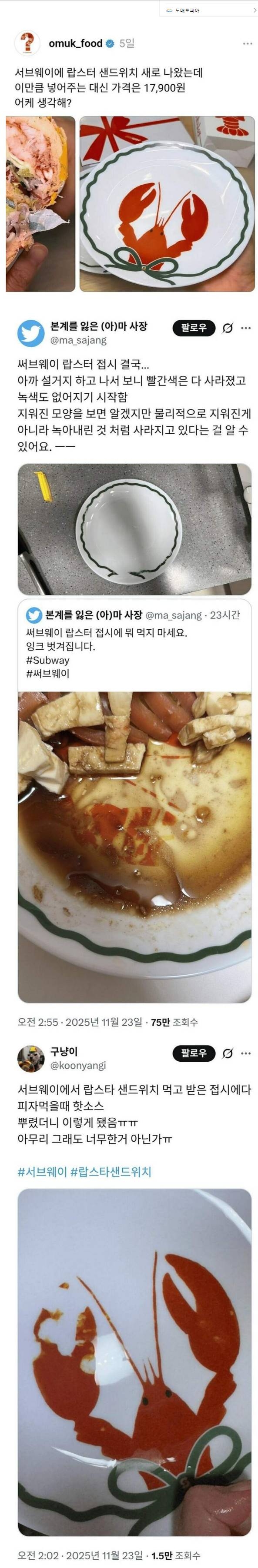 | * | [프리] | 서브웨이 랍스타 접시 논란 [2] | 달라스 | 2025/12/01 |