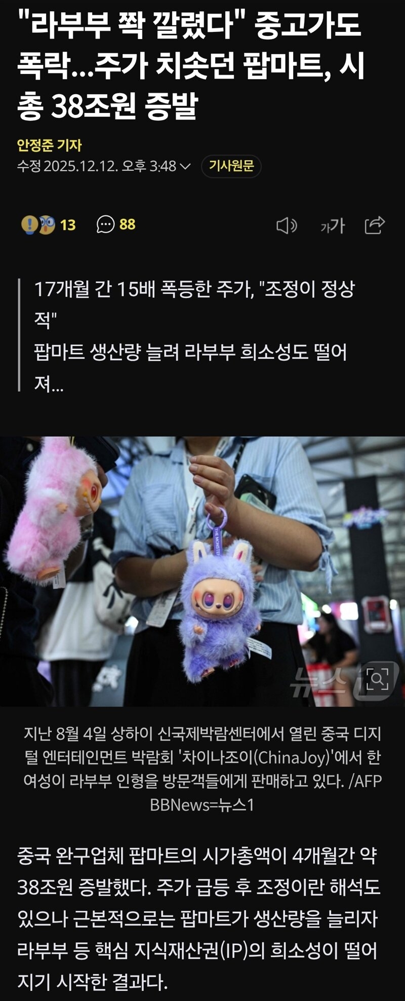 | * | [머니] | 라부부 팝마트 시총 38조 증발 | ionme | 2025/12/12 |