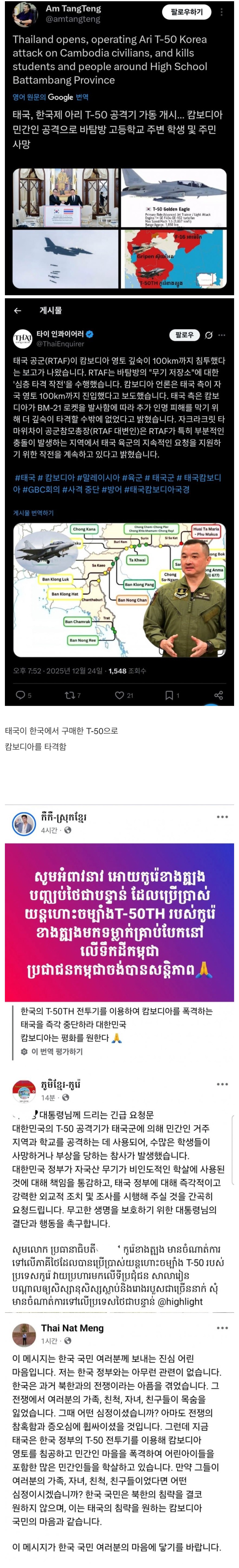 * [소셜] 한국제 T-50 전투기로 공격당한 캄보디아 근황 살라딘 2025/12/27