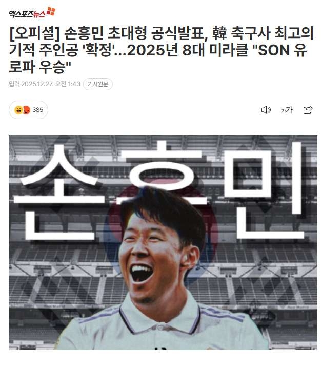| * | [스포츠] | 트랜스퍼마르크트 선정 8대 기적... 토트넘 유로파 우승 | 59와썹 | 2025/12/27 |