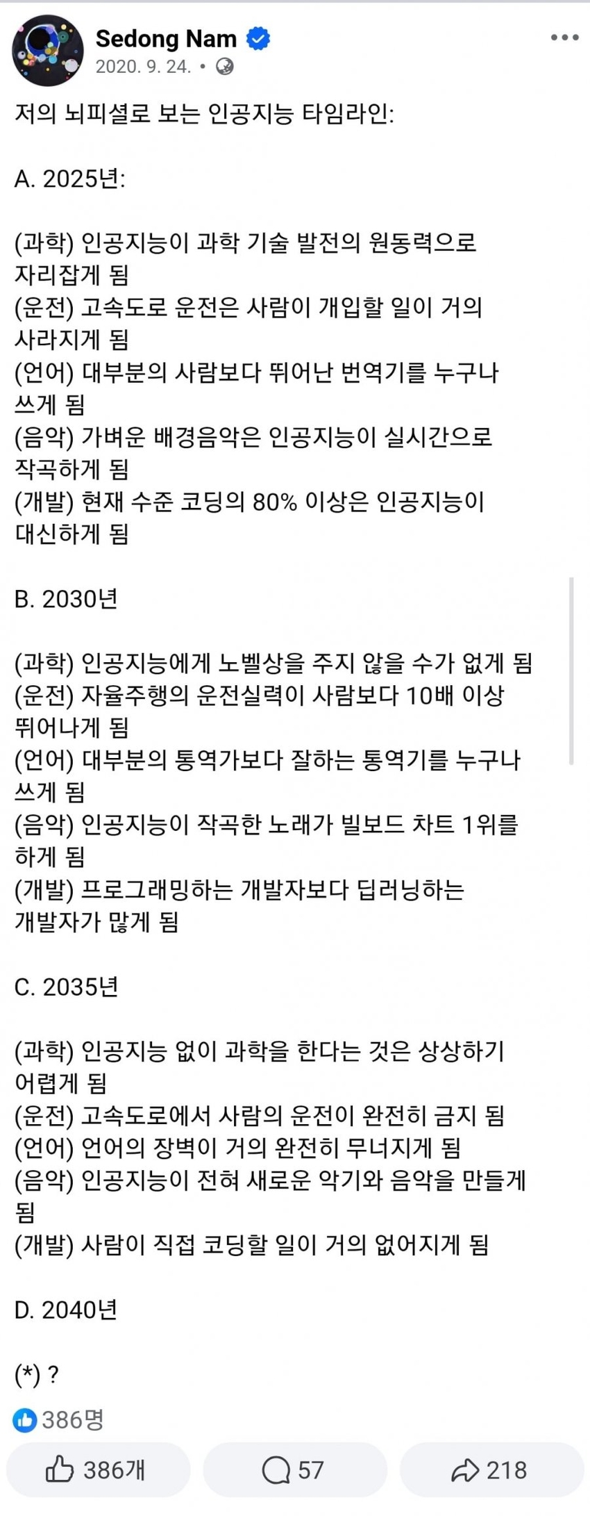 | * | [프리] | 6년 전 한 개발자가 예측한 인공지능 타임라인 [1] | 민gosu | 2026/01/09 |