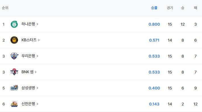 하나은행은 항상 하위권에 있는 팀인 줄
