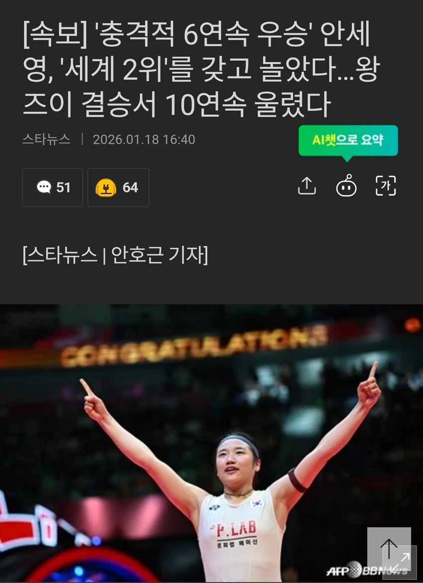 중국 왕즈이눈 안세영 상대로 결승에서만 10연패