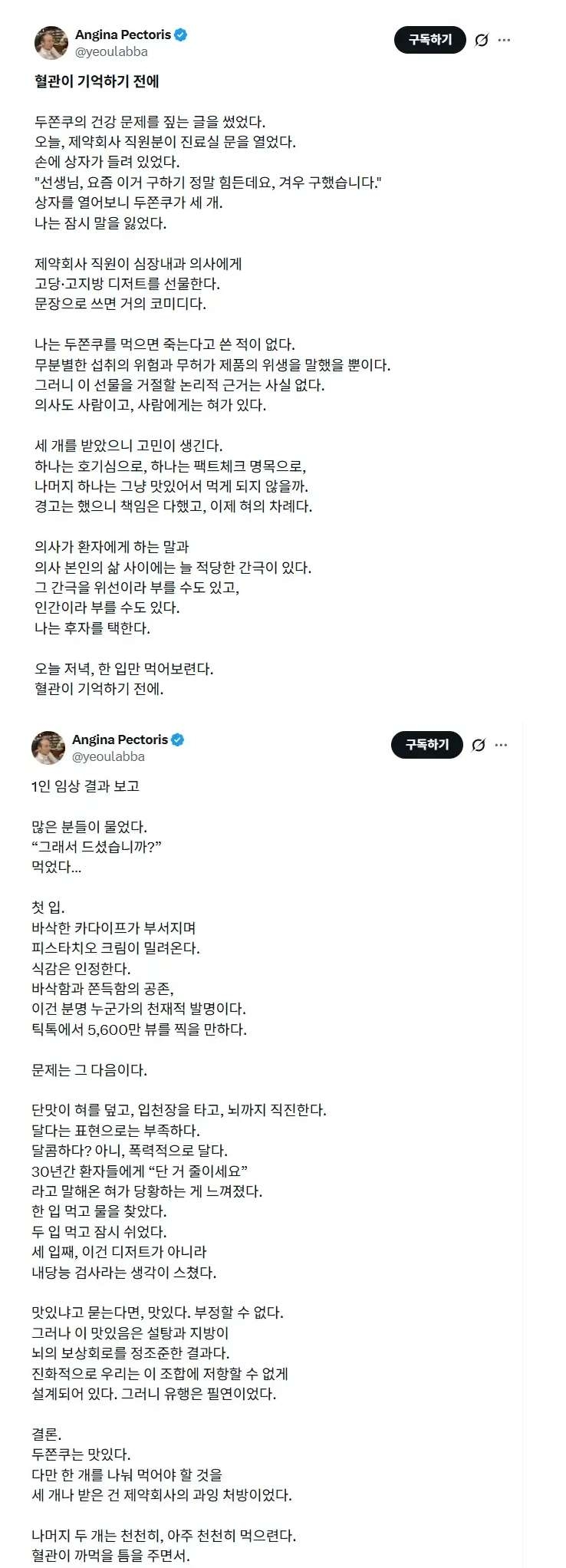 두쫀쿠를 처음 먹어본 심장내과 의사의 글