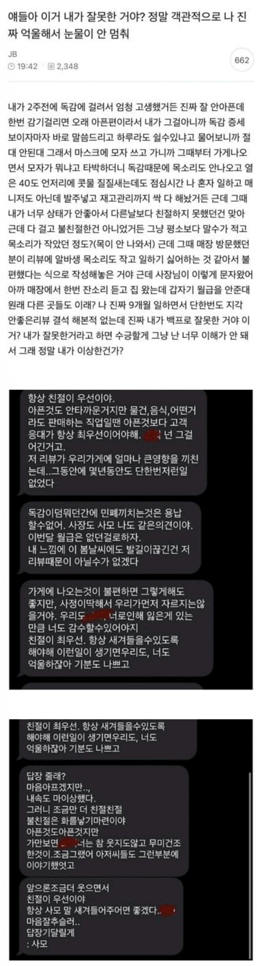 미친 거 아니냐는 말이 절로 나오는 점주 부인의 문자