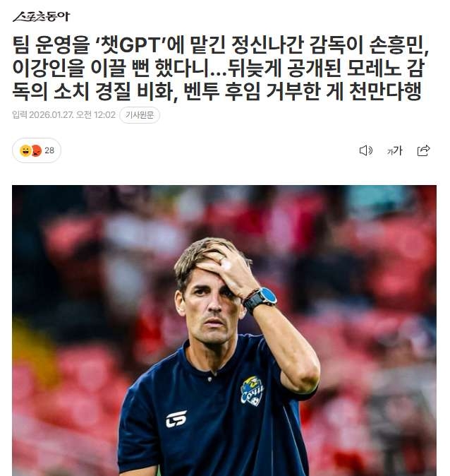 | * | [스포츠] | 팀 운영을 ‘챗GPT’에 맡긴 정신나간 감독이 손흥민, 이강인을 이끌 뻔 했다니 | supermass | 2026/01/27 |
