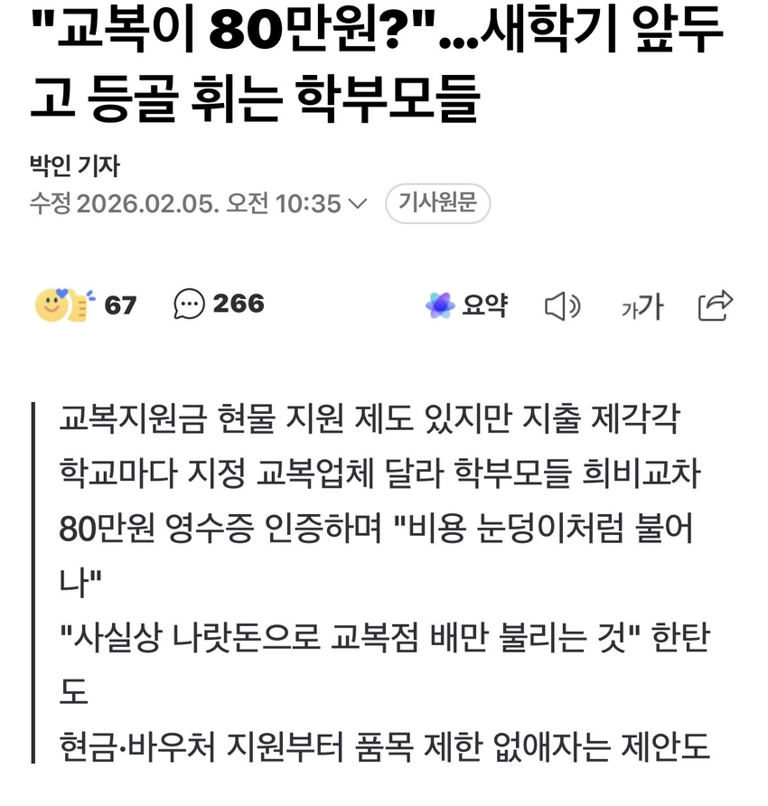 | * | [머니] | 새 학기에 등골이 휘는 학부모들 | 긍정의짧은짤 | 2026/02/05 |