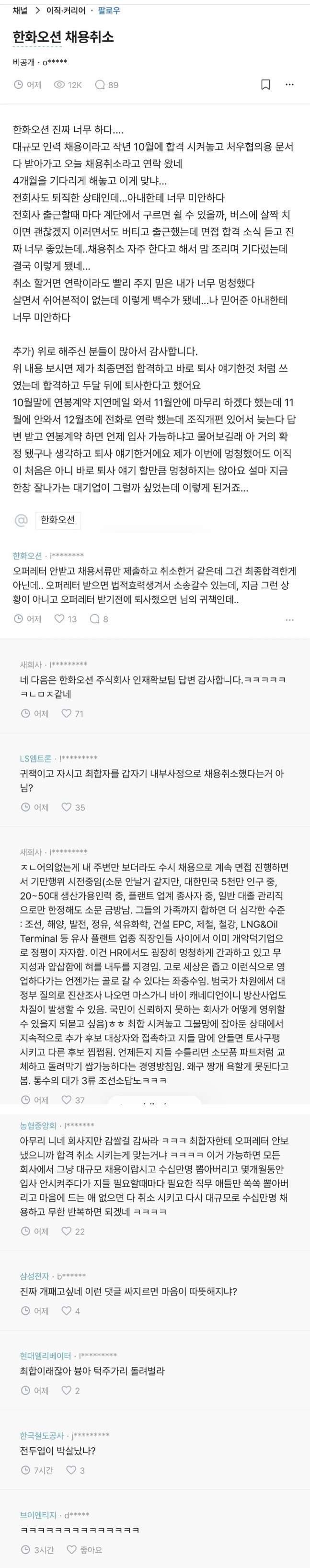 명절 하루 전 최종합격자 채용 취소한 한화오션