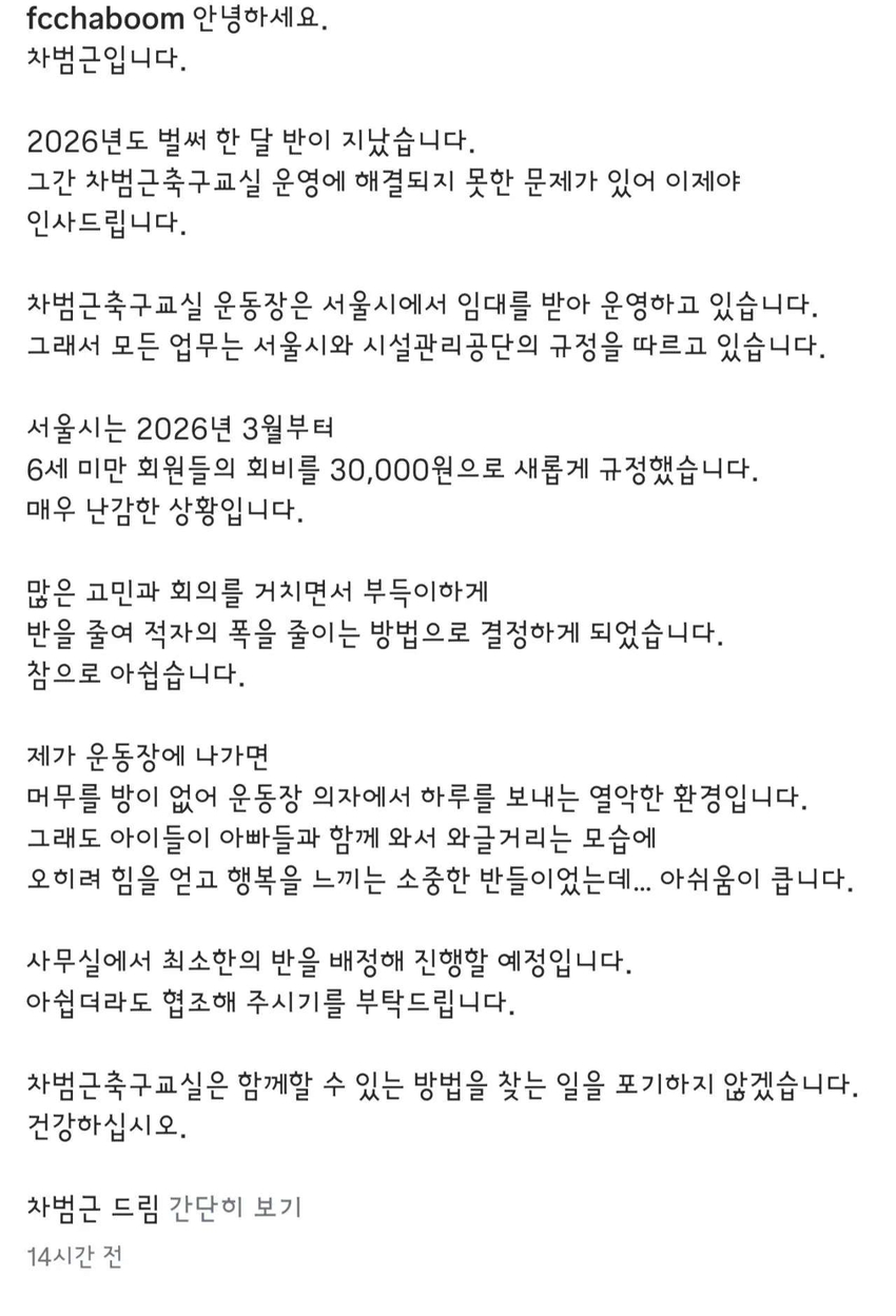 | * | [스포츠] | 여전히 힘든 상황인 차범근 축구교실 | 긍정의짧은짤 | 2026/02/15 |