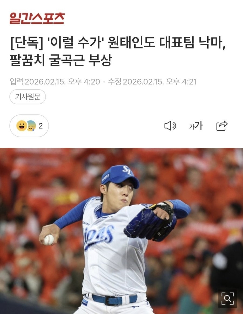 | * | [스포츠] | 원태인도 부상으로 대표팀 하차 | supermass | 2026/02/15 |