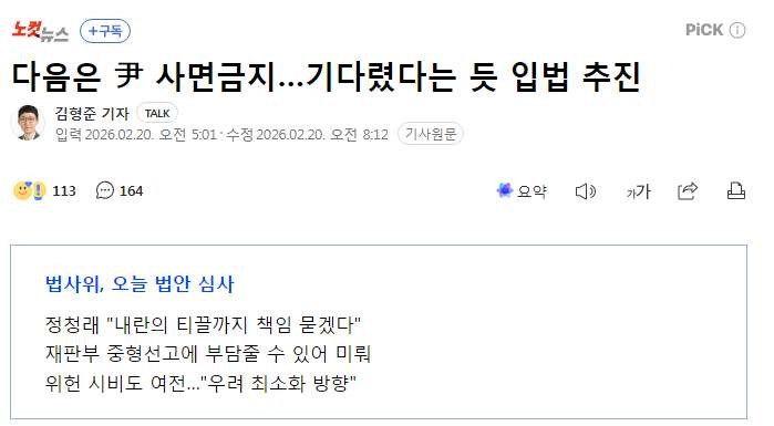 | * | [소셜] | 尹 사면금지… 곧장 입법 추진 [1] | 민gosu | 2026/02/20 |