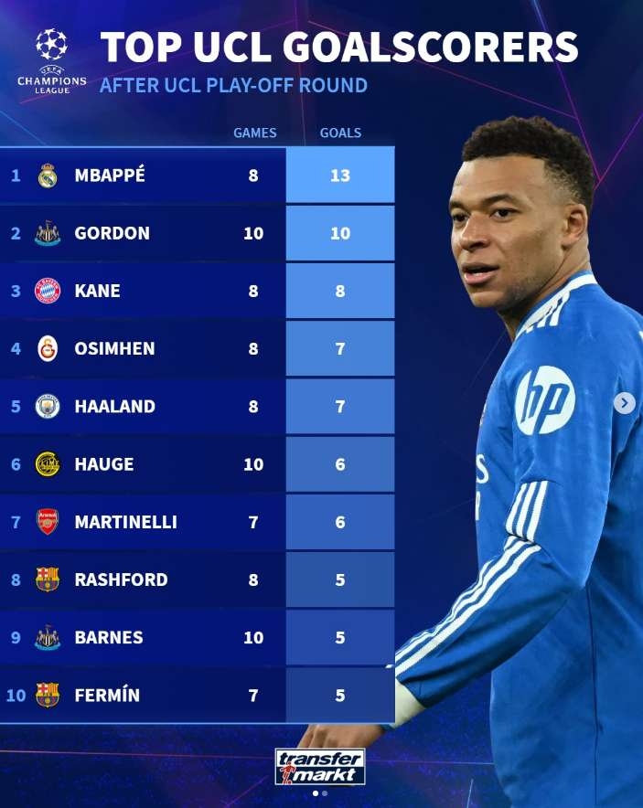 | * | [스포츠] | 챔스 플옵 득점 탑랭커들 [1] | 585뭉개리 | 2026/02/26 |
